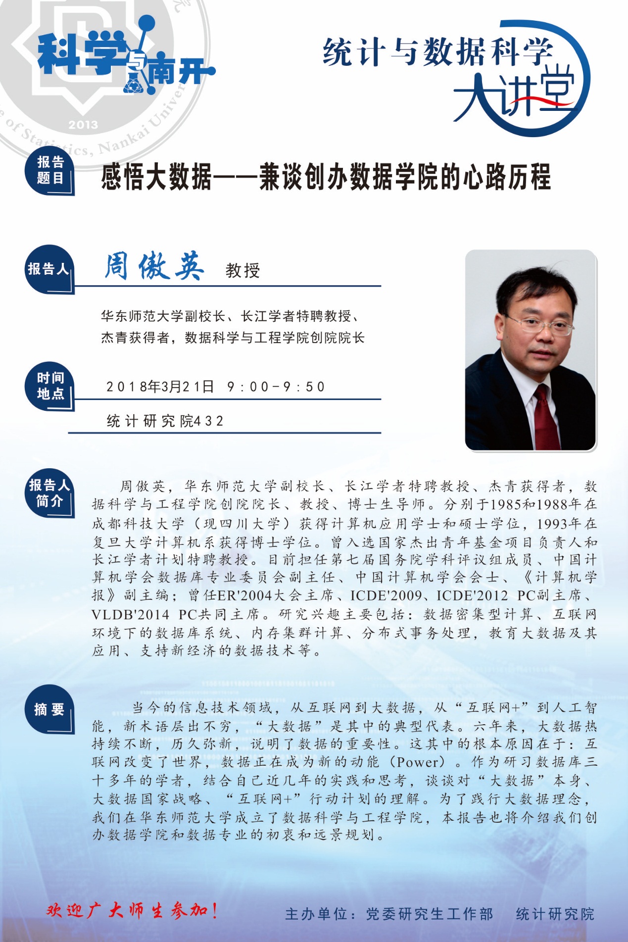 周傲英教授做客科学与南开:感悟大数据---兼谈创办数据学院的心路历程