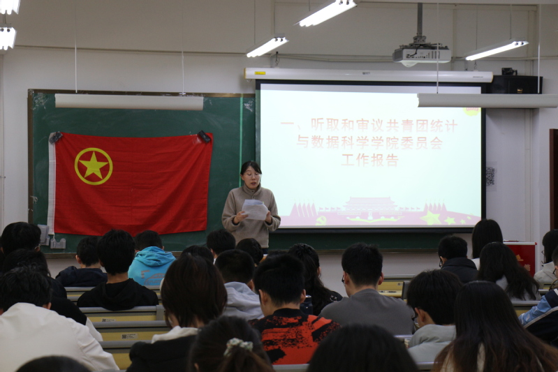 首先张思彤代表学院团委作工作报告。她强调,统计与数据科学学院始终坚持以习近平新时代中国特色社会主义思想为指导,强化思想引领,筑牢组织建设;聚焦学科育人,提升科研创新“驱动力”;立足全面发展,拓宽五育融合“辐射面”。展望未来,学院团委将继续抓牢党建引领、学科育人、实践育人、科研育人等重要环节,为实现中国式现代化、中华民族伟大复兴的中国梦贡献统院青春力量。