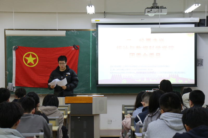 随后,大会进行共青团统计与数据科学学院第二届委员会和共青团南开大学第十六次代表大会统计与数据科学学院团员代表选举。正式投票前,张昕诺宣读选举办法,全体参会人员通过了大会总监票人、监票人、计票人名单。