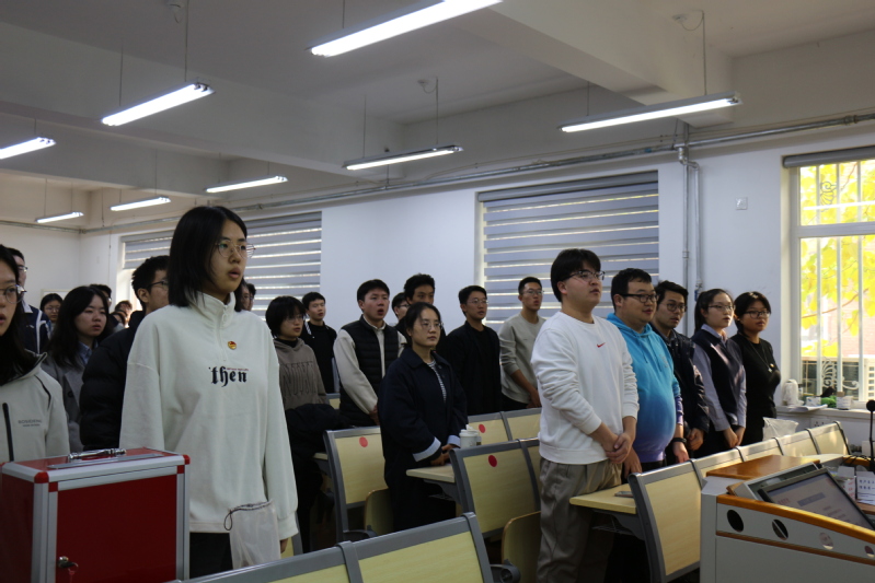 大会伊始,主持人张思彤整肃会场纪律,报告到会人数,宣读大会流程。大会主要分为三部分内容,一、听取和审议共青团统计与数据科学学院委员会工作报告;二、选举产生共青团统计与数据科学学院第二届委员会;三、选举共青团南开大学第十六次代表大会统计与数据科学学院的团员代表。全体起立奏唱《中国共产主义青年团团歌》,拉开会议帷幕。