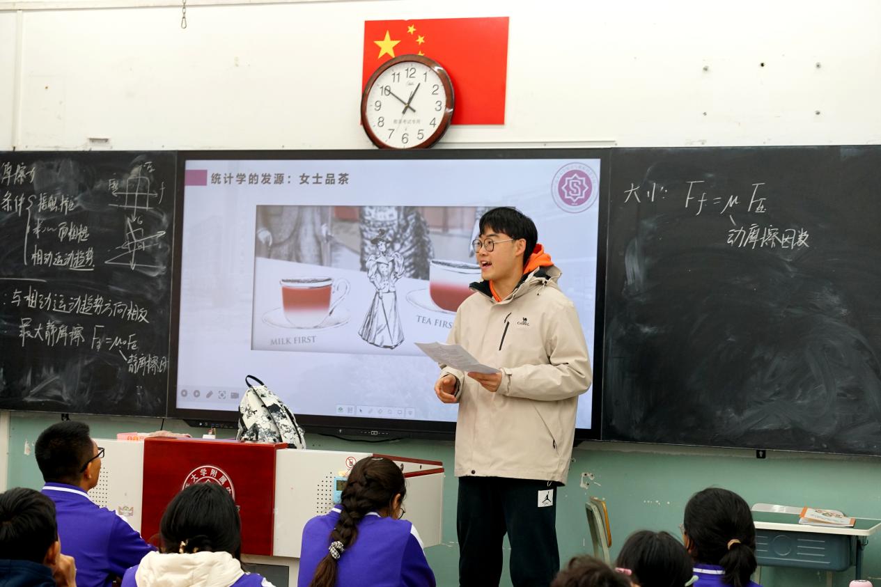 2025年11月5日,南开大学统计与数据科学学院2024级本科四班团支部联合与你“统”行宣讲团,走进南开大学附属中学,面向高一年级学生开展了“了解统计、运用统计、拥抱统计”的统计学科普宣讲活动。活动通过生动案例与互动交流,引导同学们感受统计学的趣味与价值。